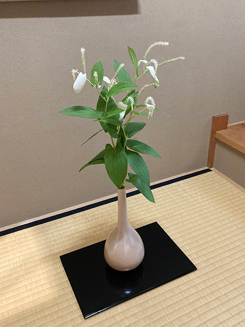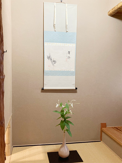 | | 茶碗 風炉 紅鉢(炭) 5日 鋳物 16日 花 百日草、斑入り薄 5日、16日 主菓子 18日、21日 |