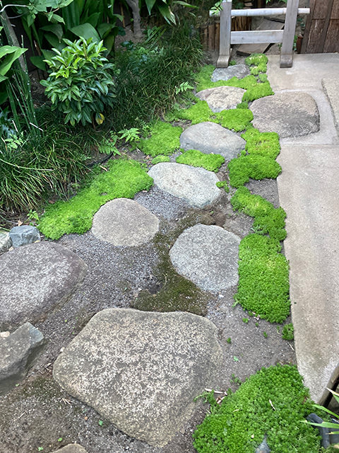 梅雨が上がったような天気が続いたと思ったらまた梅雨空が続き、やっと18日ころ梅雨明けだと発表がありました。うだるような暑さです。緑色がきれいだった苔も先端部分が幾分か黄色くなってしまい、急いで遮光シートを張りましたが、ちょっと遅かったみたいです。灯篭の笠の苔も、今年はきれいになるだろうなと思っていましたがまばらのままで終わりそうです。今月も3回のお稽古がありました。1回目は5日に真紀子先生ご指導の親子でのお稽古、16日に珠乃先生ご指導の上四小の子供たち主体のお稽古、31日は珠乃先生ご指導のお稽古でした。この日に、この春高校生になった生徒さんが、夏休みだから是非お稽古させてくださいという事で31日に参加でした。