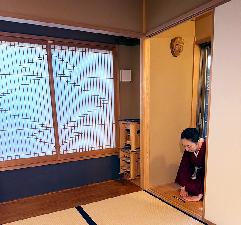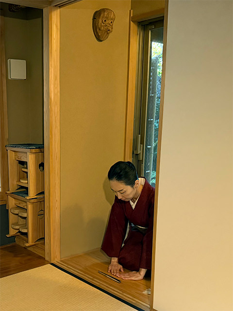 - 茶室の入口で一礼し、先生やほかの生徒さんに挨拶をします