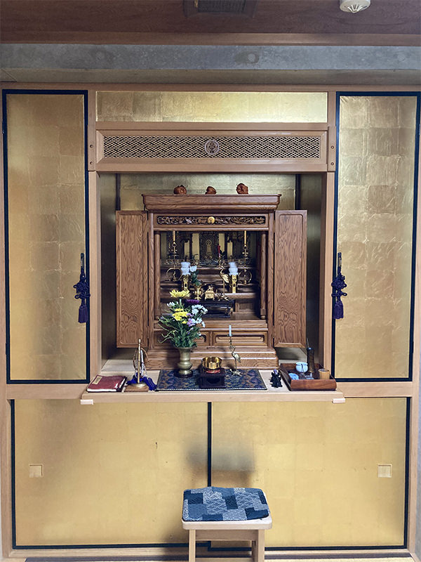 真宗仏壇の金額はピンキリですけれども、200万円位はすると聞いていました。本物の金箔で仕上げてあれば、500万円は下らないと思います。今回は大工造作して全体的に金仏壇風にしたという事です。